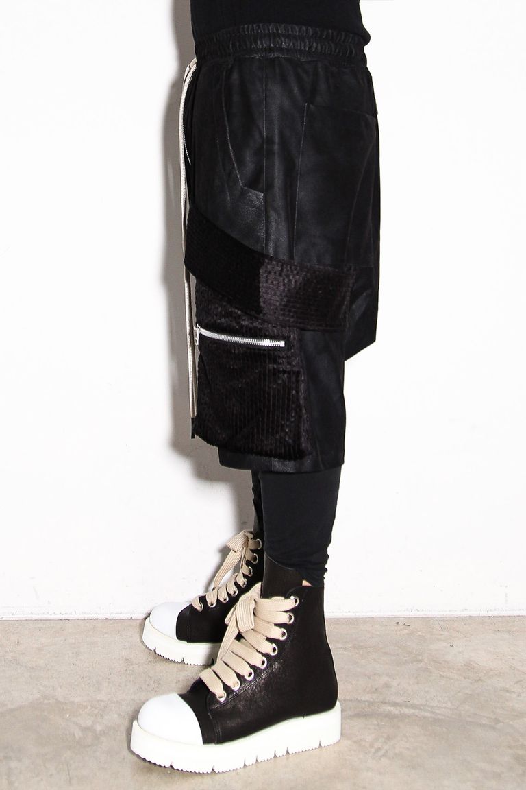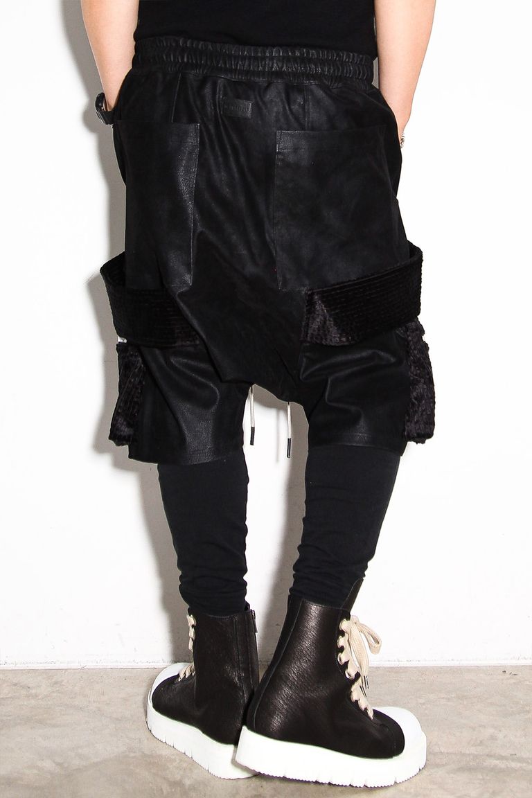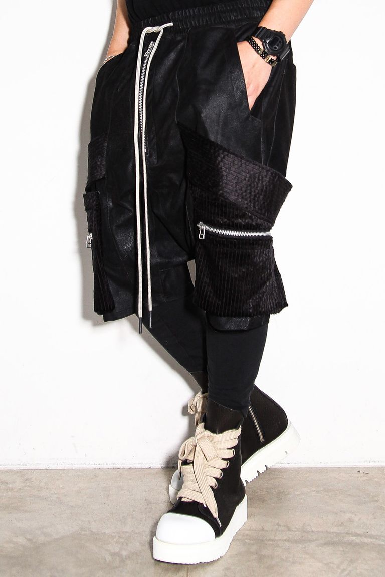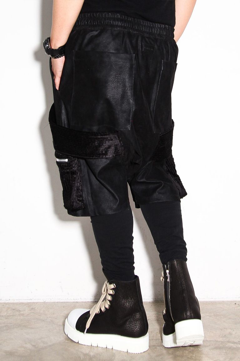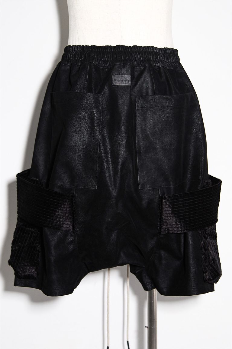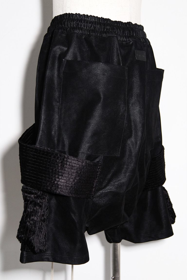 シンセティックレザーベルトカーゴショーツ / BELT CARGO SHORTS / ブラック / ag-12052