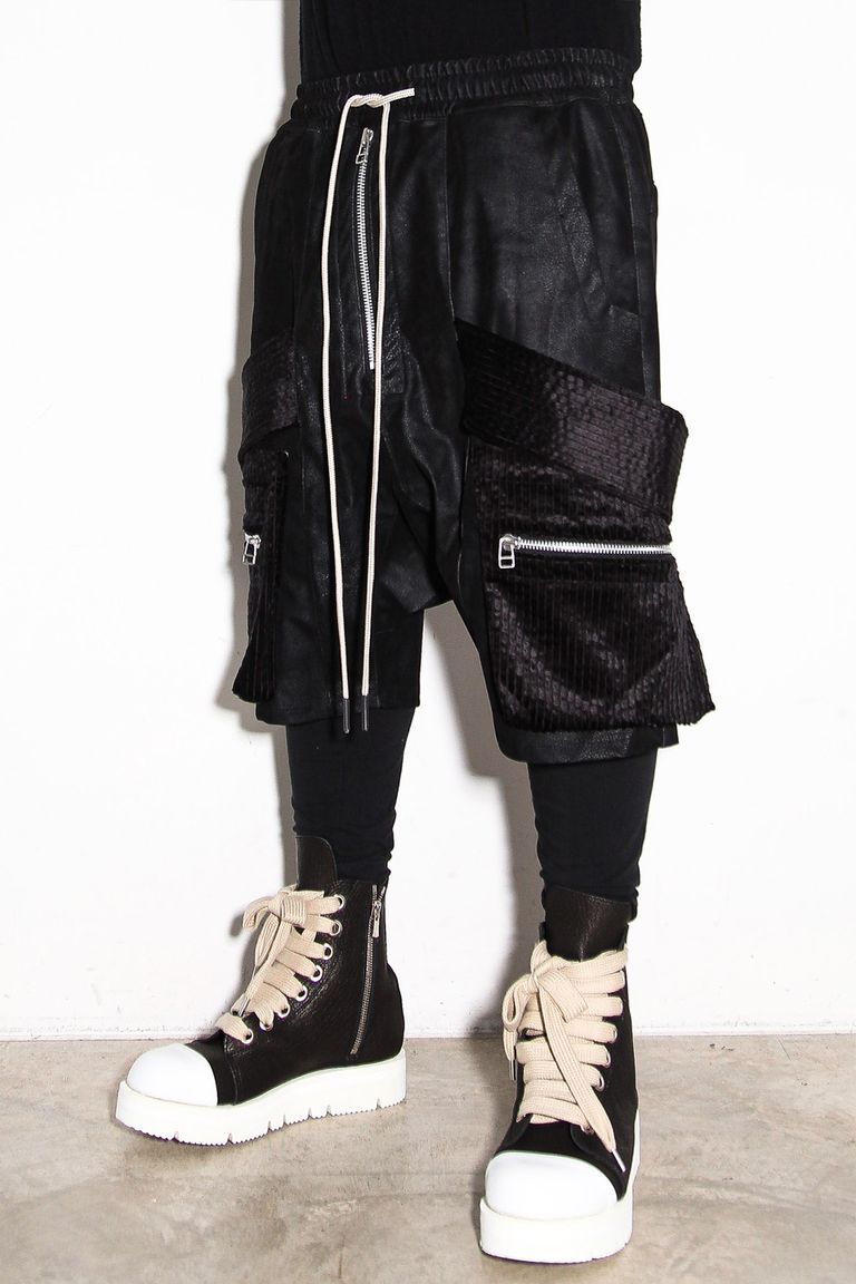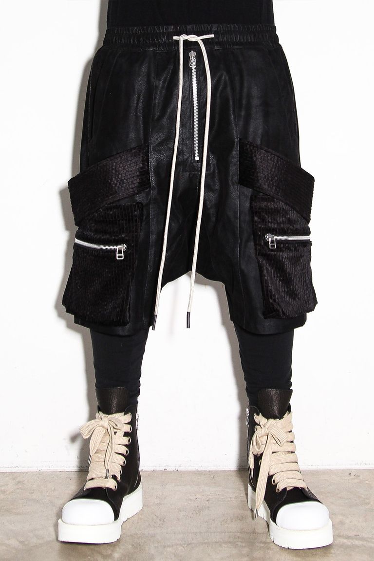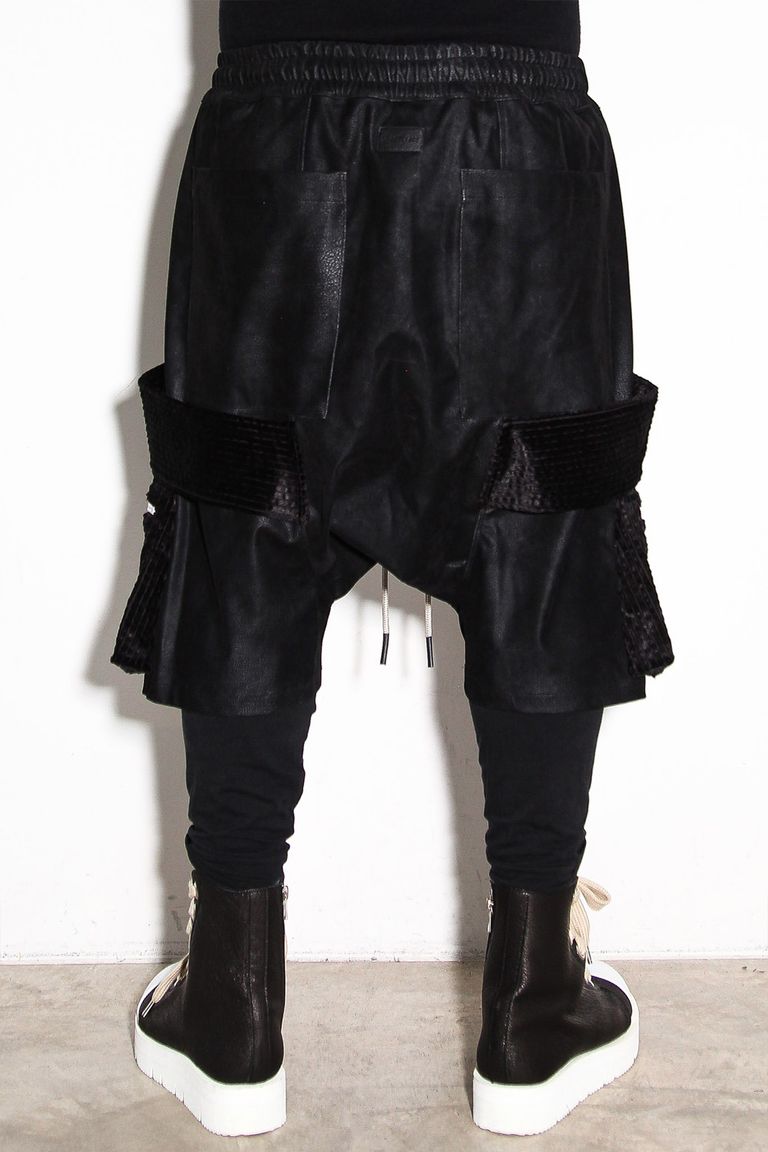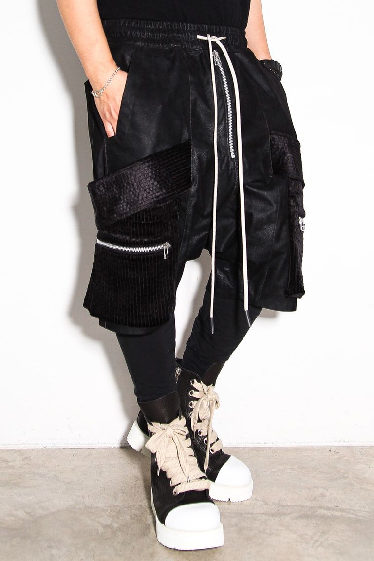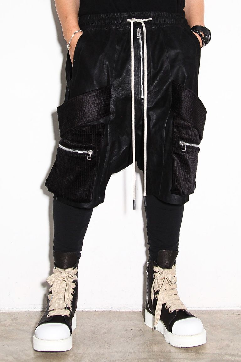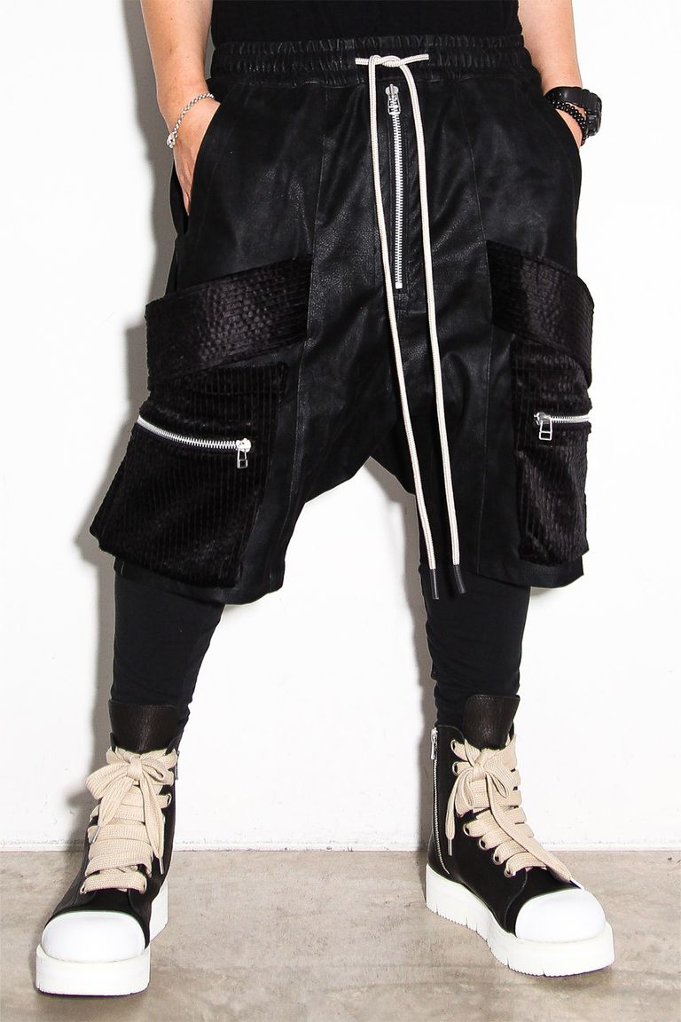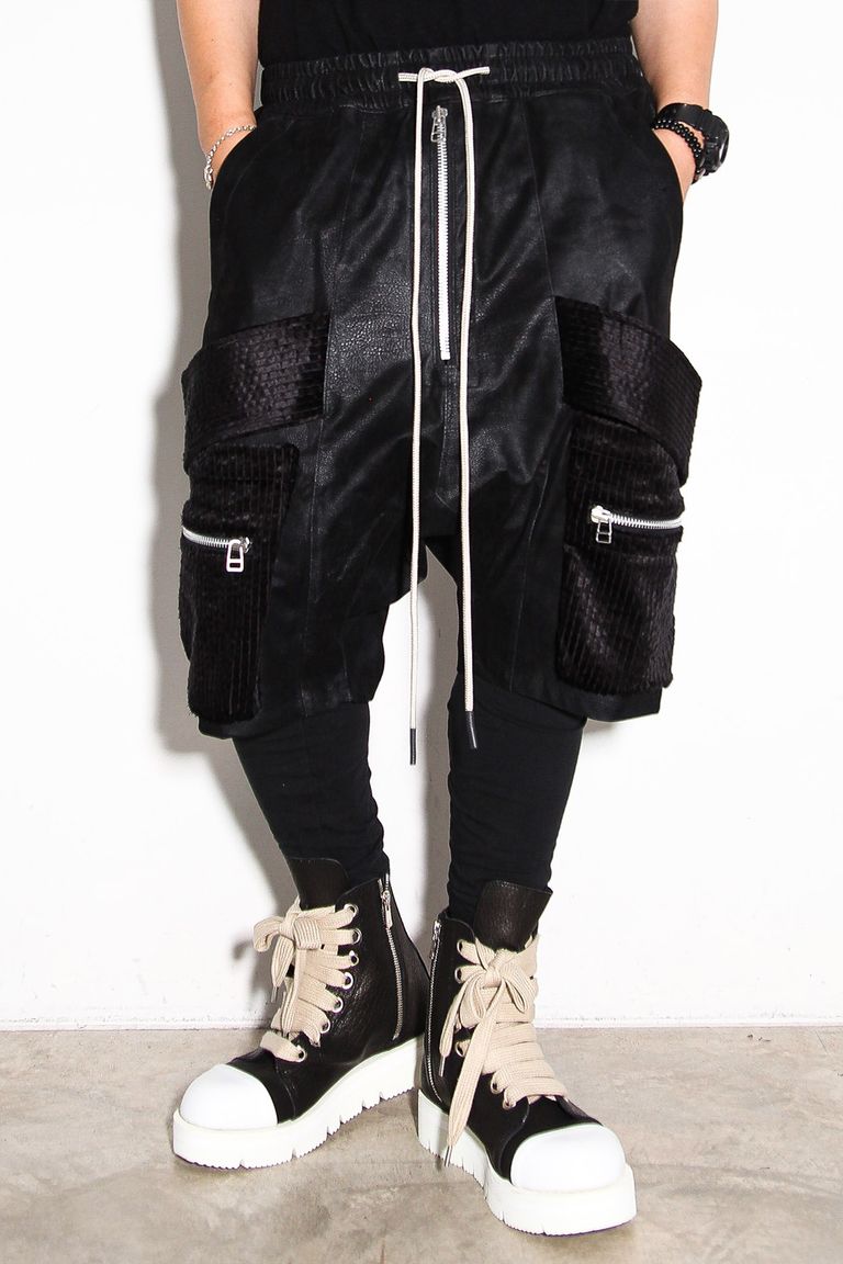 シンセティックレザーベルトカーゴショーツ / BELT CARGO SHORTS / ブラック / ag-12052