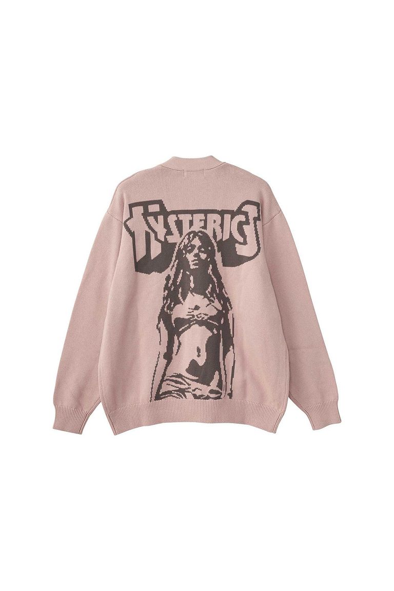 ヒステリックグラマー渋谷店のエントランスのネオンでも馴染みの深い90年代のヒステリッククラシックなモチーフを後身頃にインターシャで表現。(タイトルはいかしたママという意味)