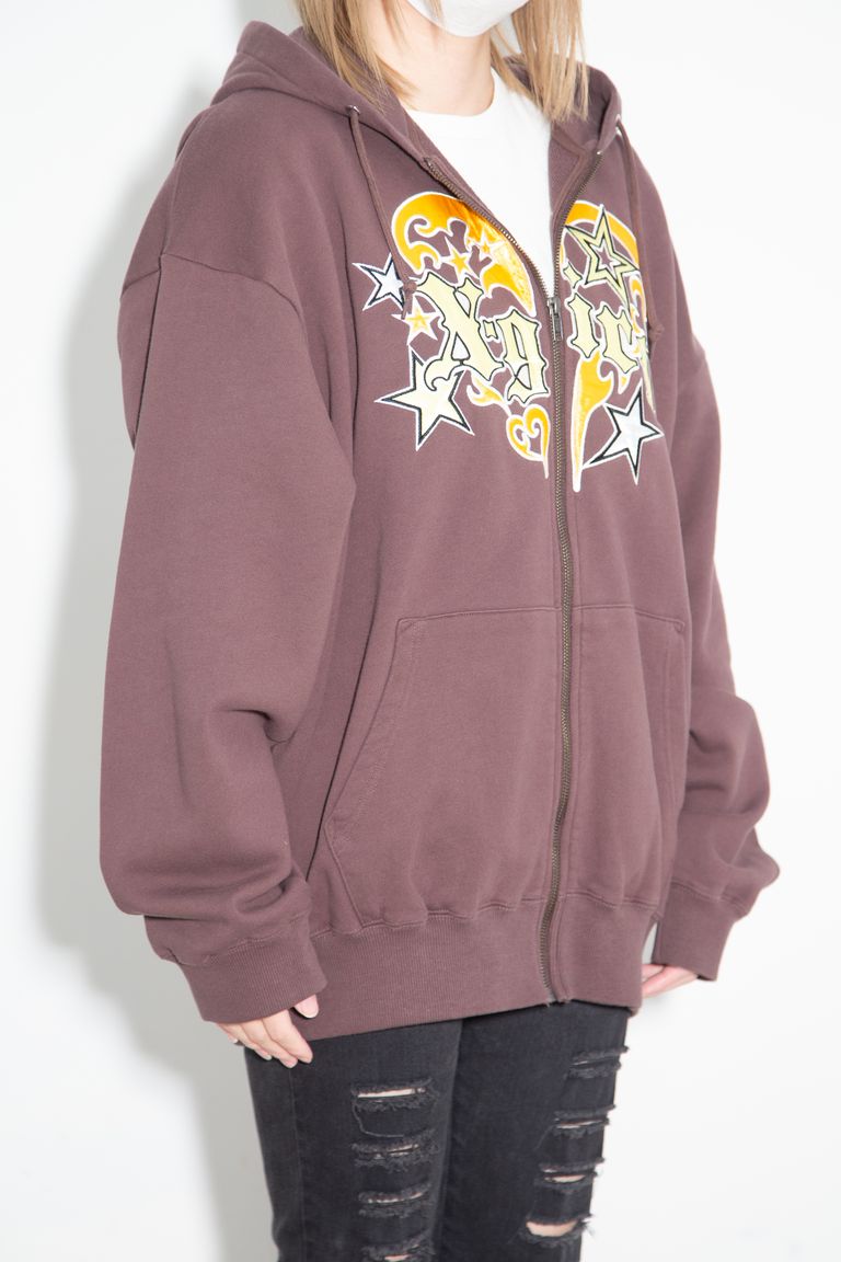 [ラスト1点 サイズM] TRIBAL HEART ZIP UP SWEAT HOODIE / ブラウン