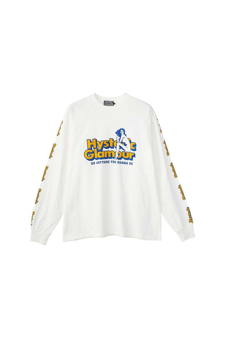 HYSTERIC WOMANを連想させるバンドのリリックをフロントに配し、ブランドロゴを袖にライン状に配列したオフィシャル感あるデザインのTシャツ。