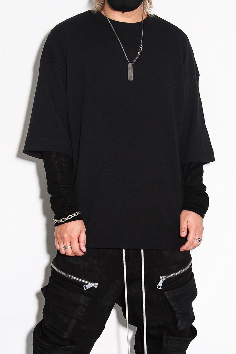 [ラスト1点 サイズ2] LAYERED CREW NECK TOP / ブラック / ag-12111