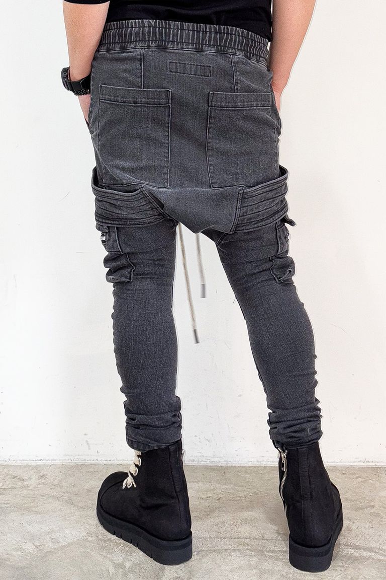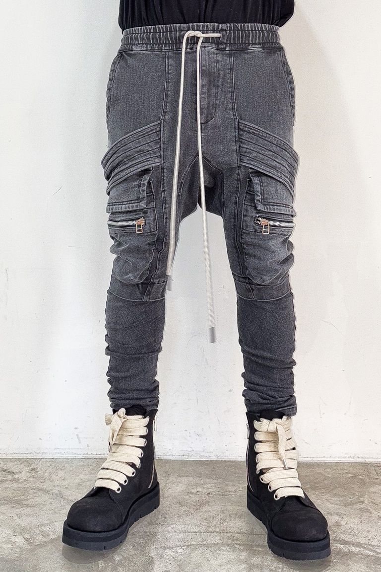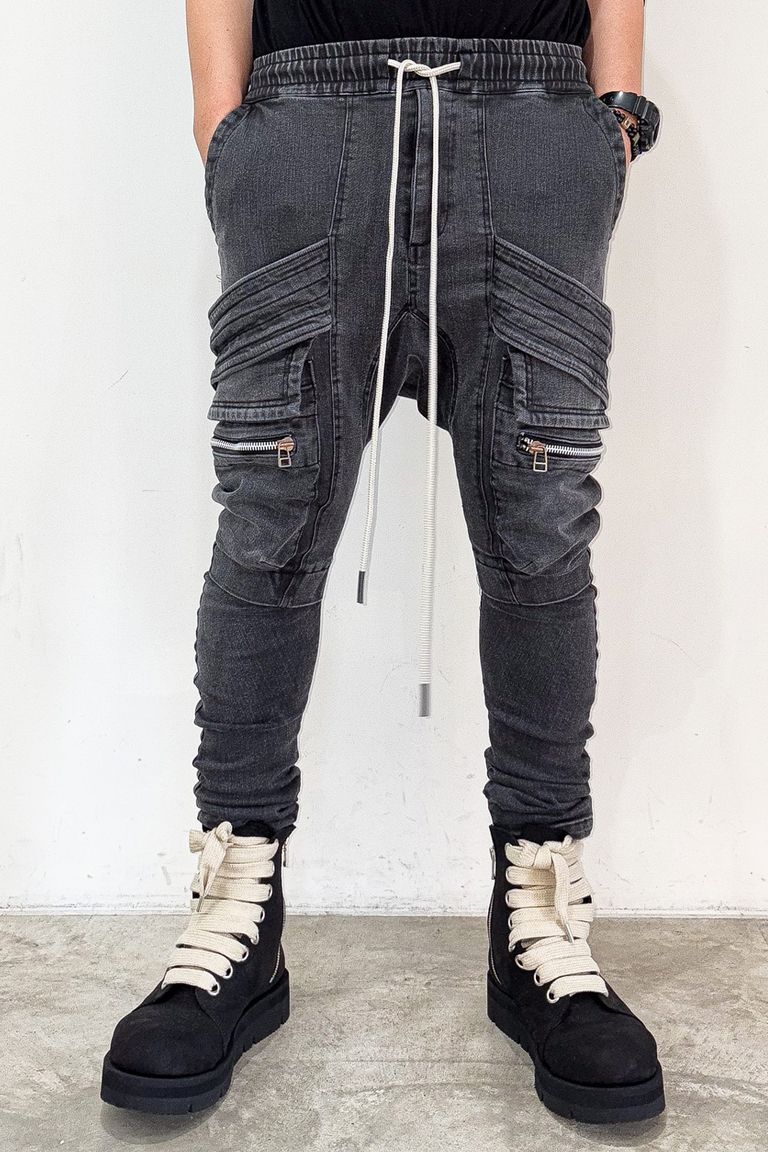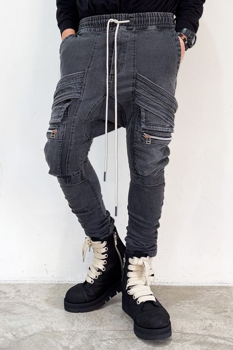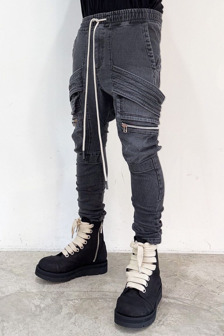 サルエルカーゴスキニーデニム / Indigo Denim Cargo Sarouel Skinny / ダメージブラック / ag-6036-2