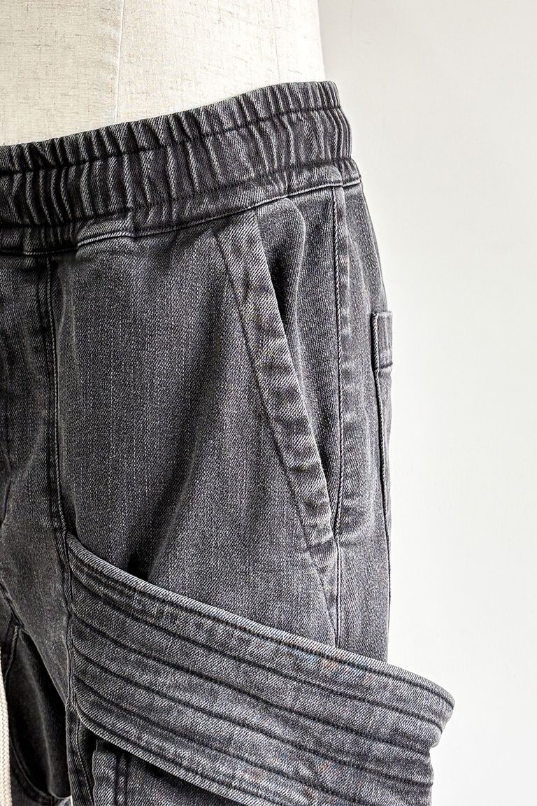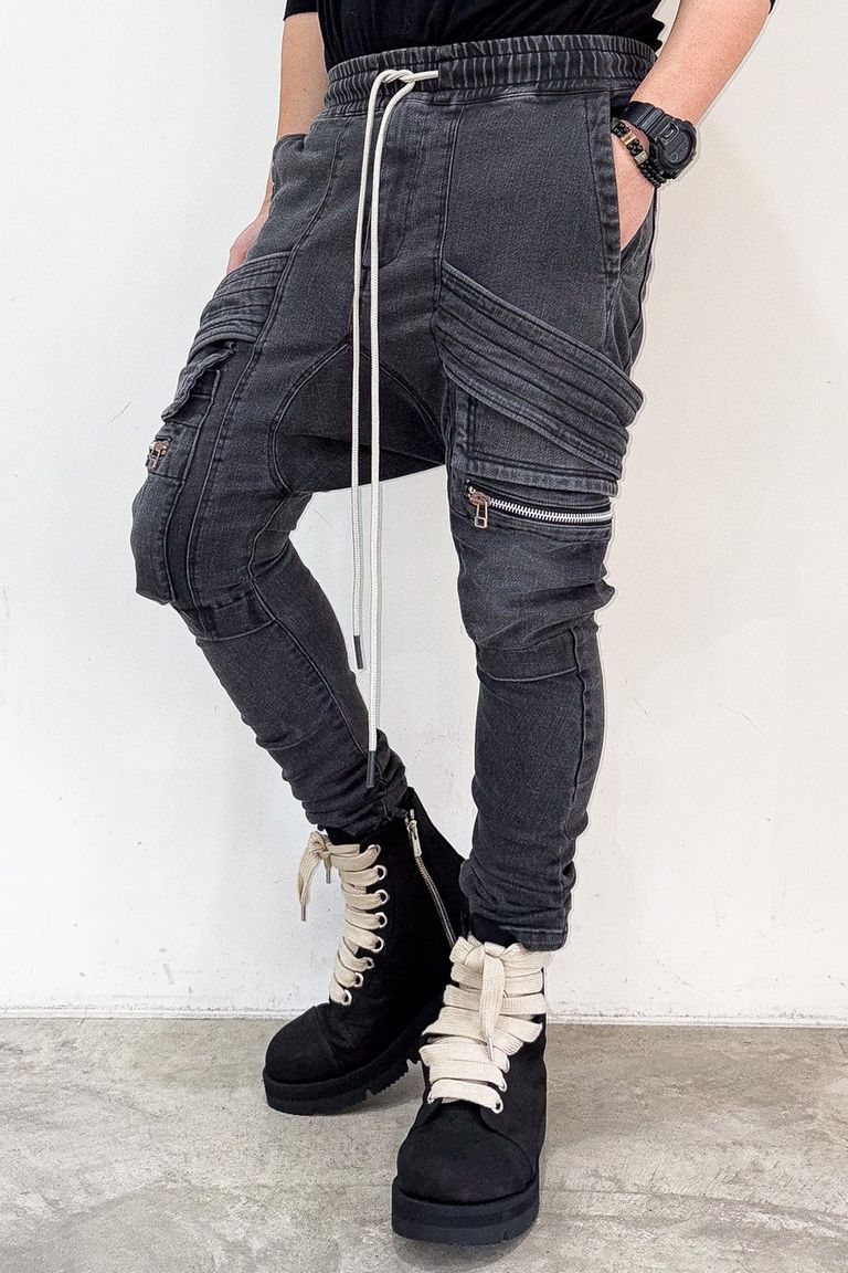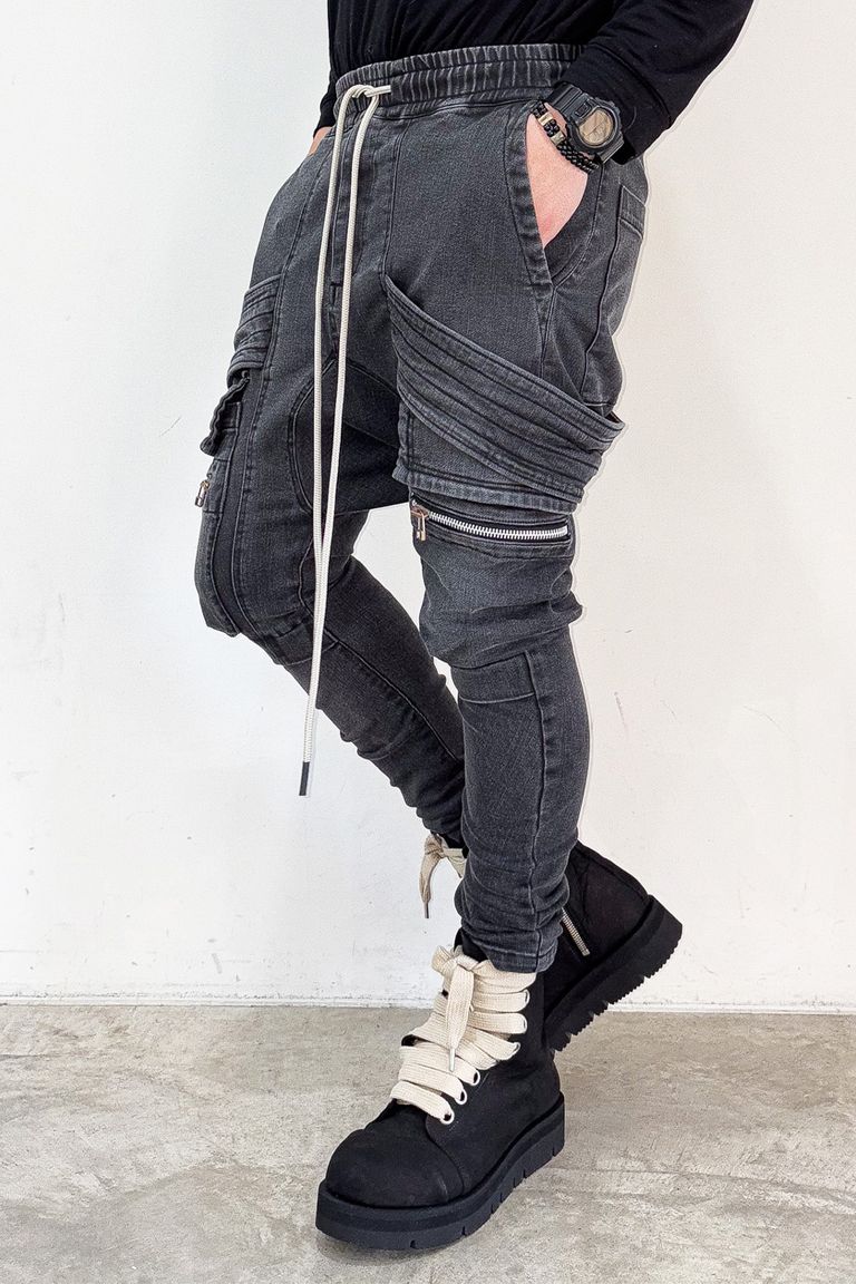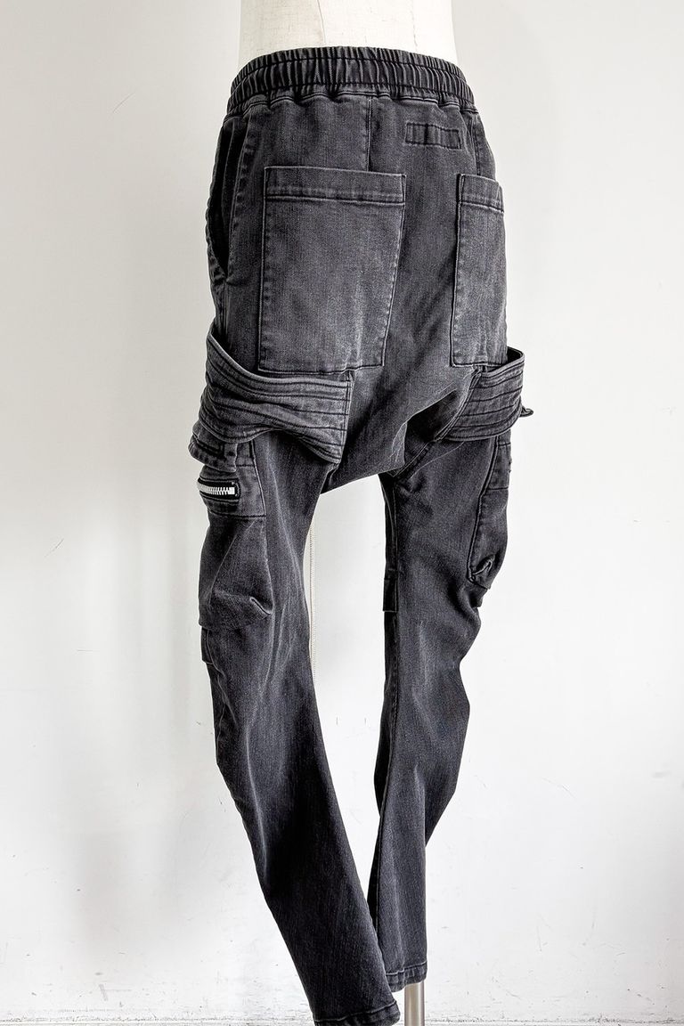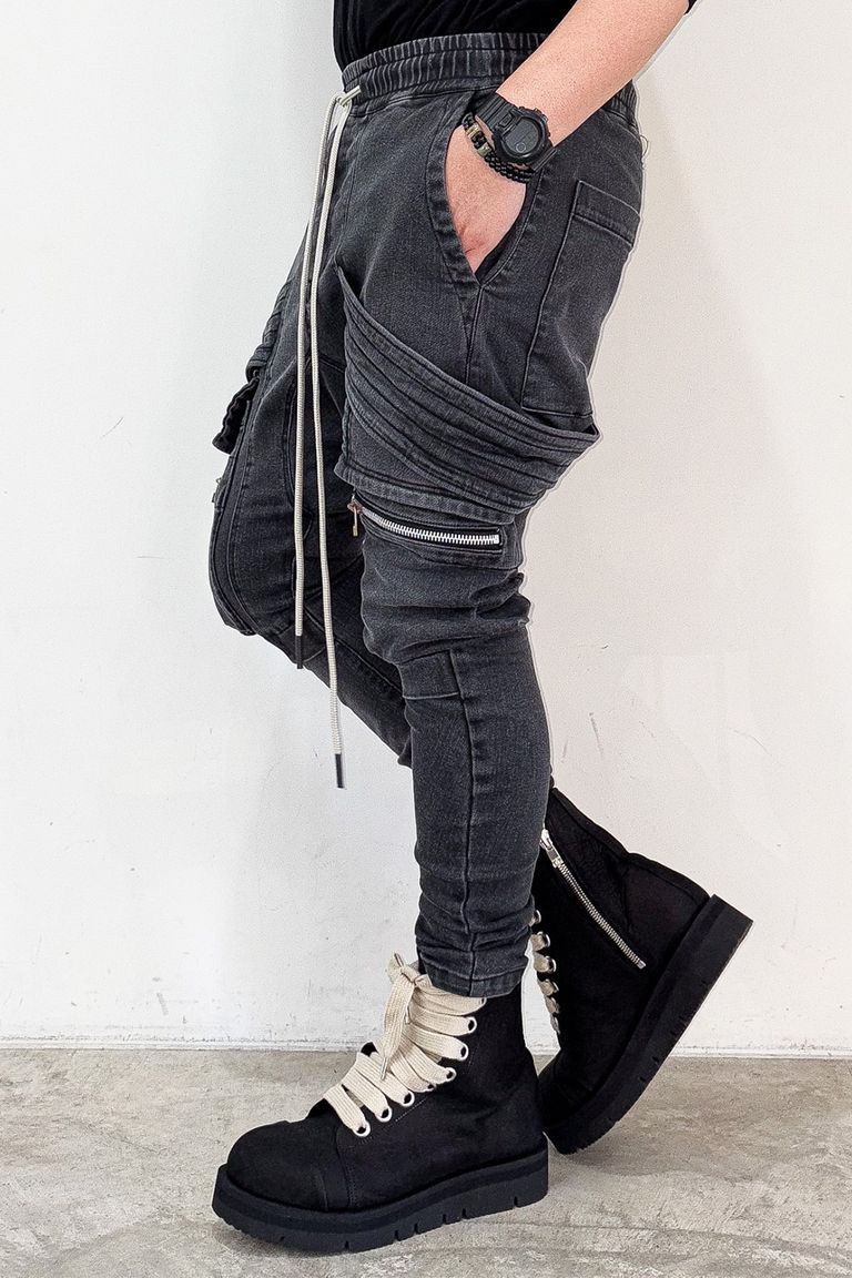 サルエルカーゴスキニーデニム / Indigo Denim Cargo Sarouel Skinny / ダメージブラック / ag-6036-2