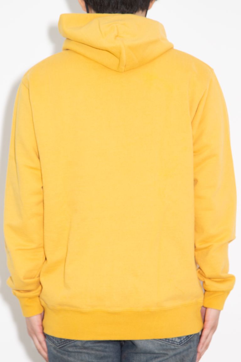 表糸と中糸のバランスを調整することで、あえてデコボコとした表面感を表現。ミドルウェイトのヴィンテージ裏毛のような、少しラフで味のある風合いに仕上げた。最新の編み機では出せない、どこかイレギュラーな表情が魅力の一枚。