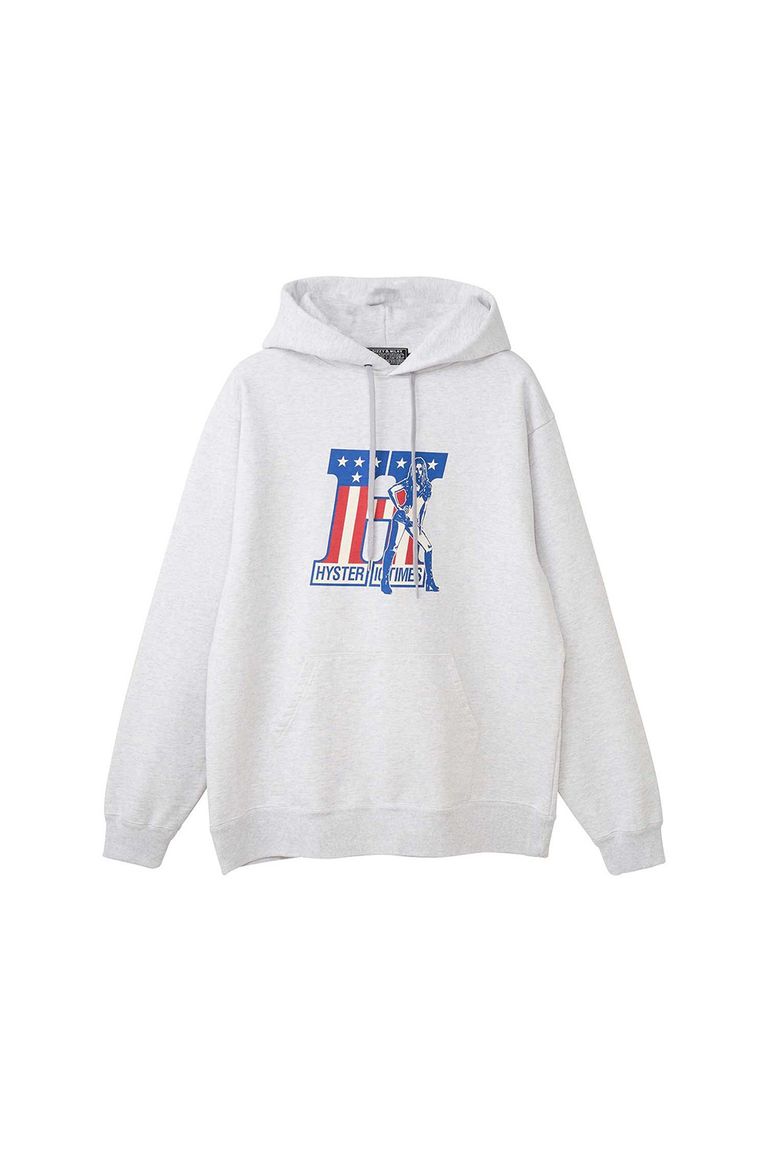 フロントには、乾いたハイウェイをスロットル全開で駆け抜ける HYSTERIC WOMAN を描いたグラフィックを配したパーカー。