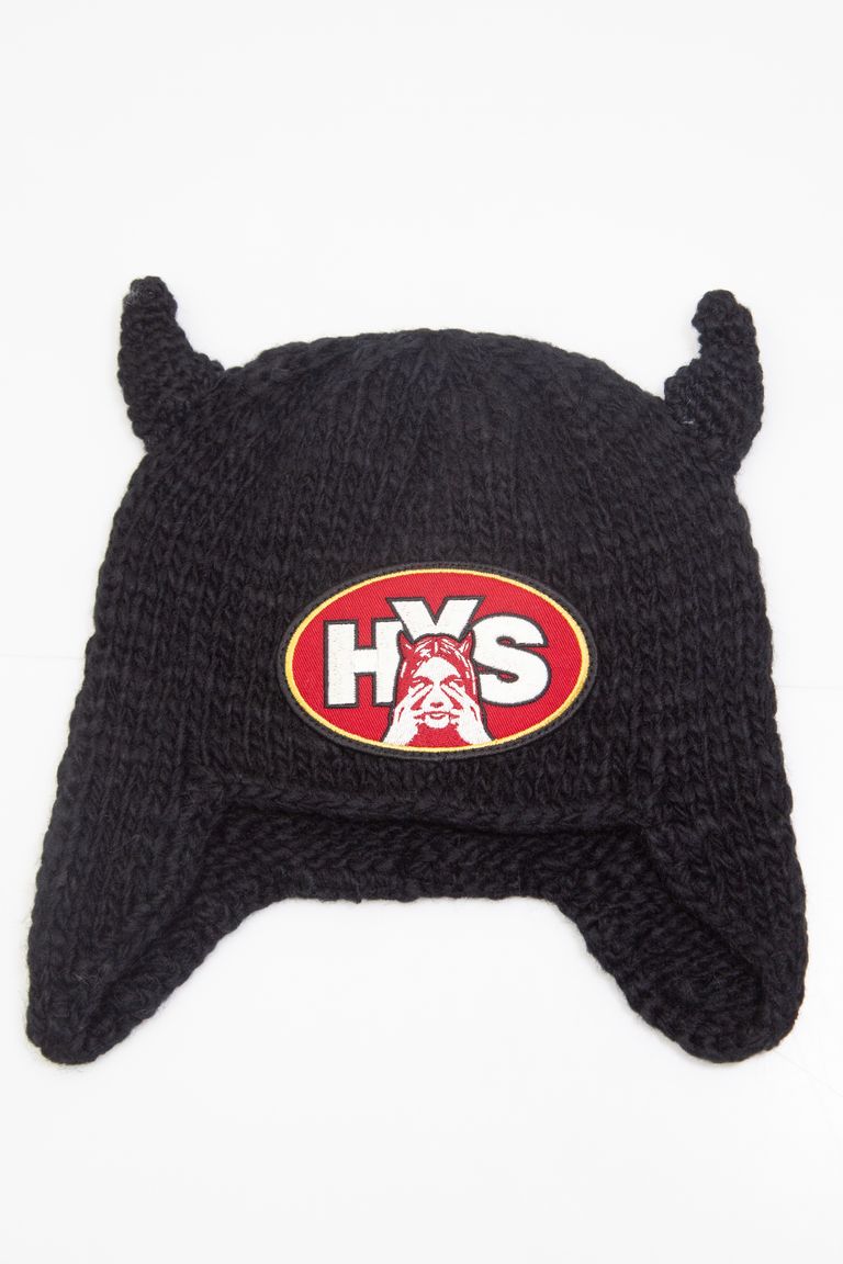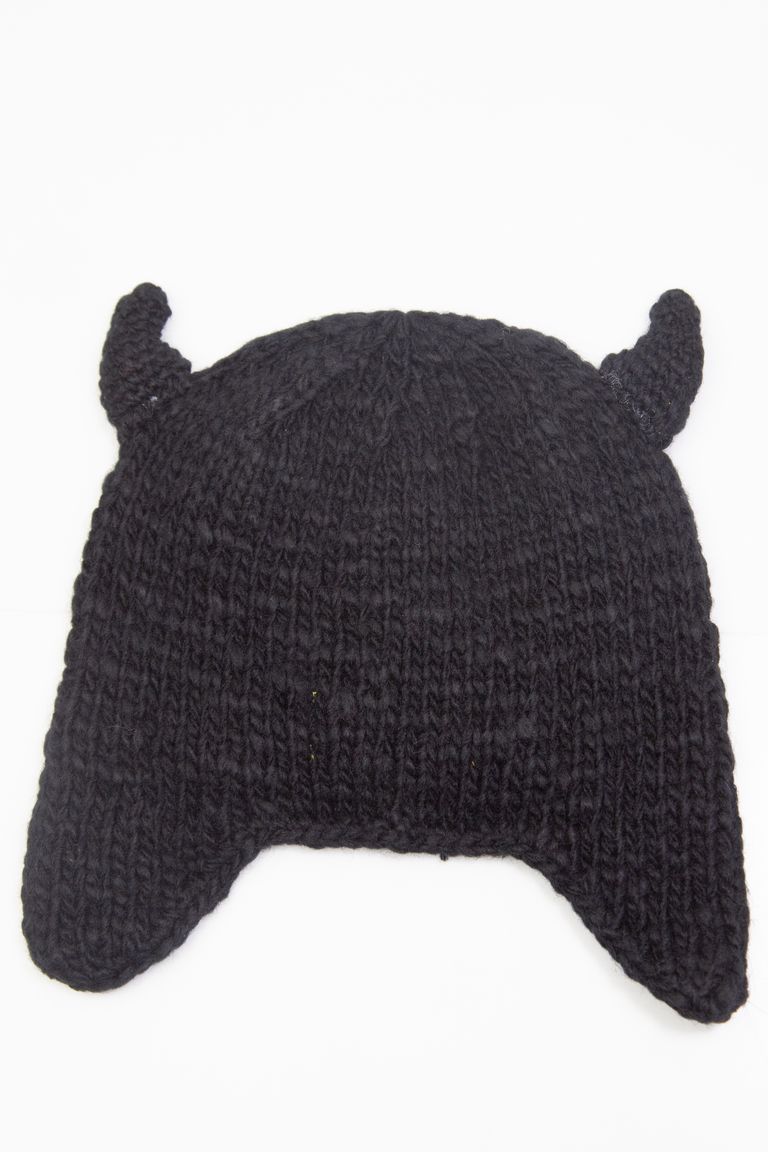 いたずらなツノが目を引く、ハンドメイドのニットキャップ。