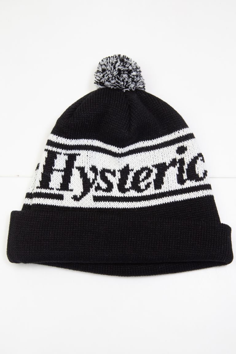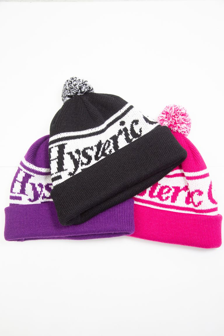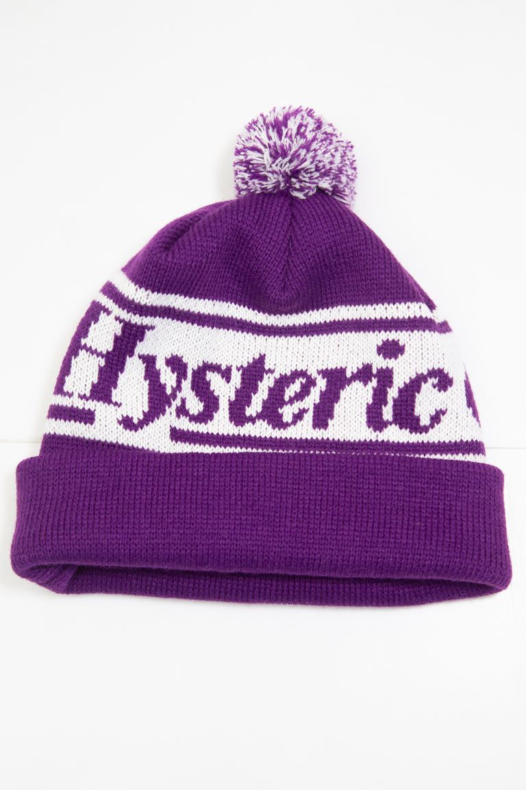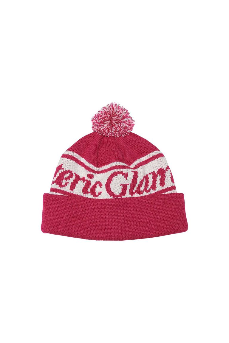 ボリューミーな編み地でロゴとボーダーをあしらったボンボン付きニットキャップ。