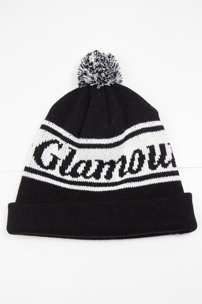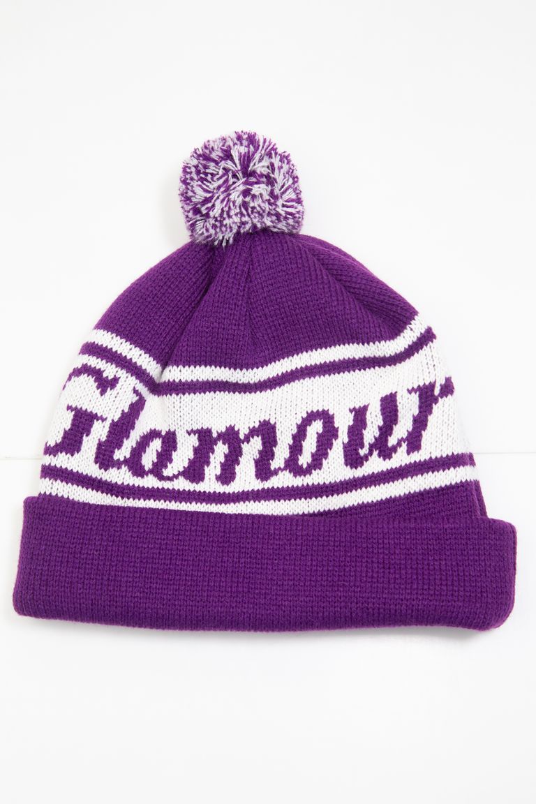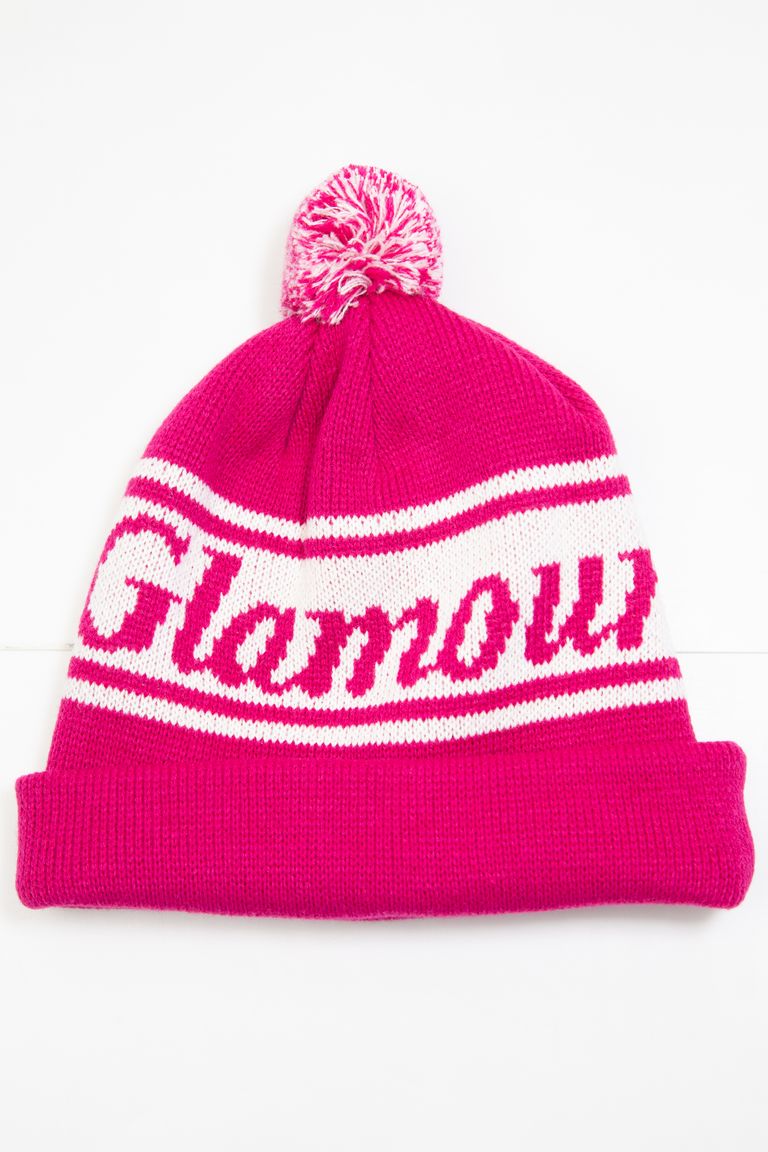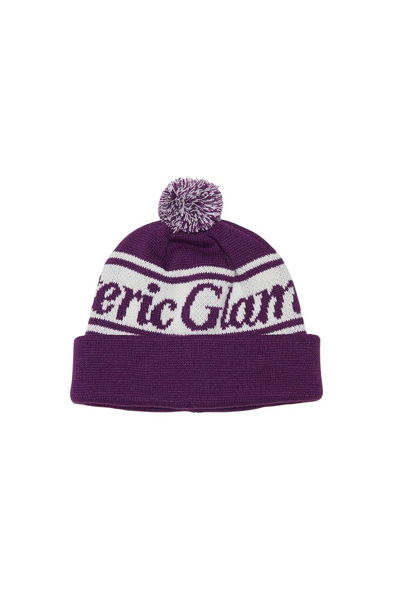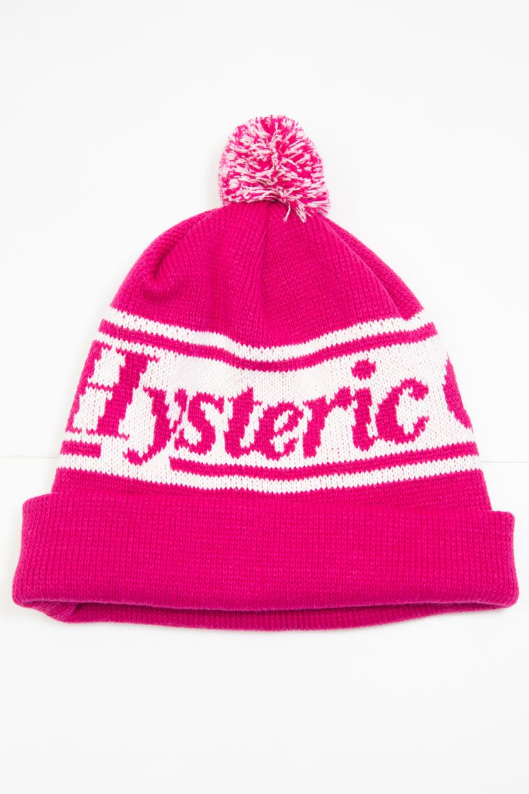 ボリューミーな編み地でロゴとボーダーをあしらったボンボン付きニットキャップ。