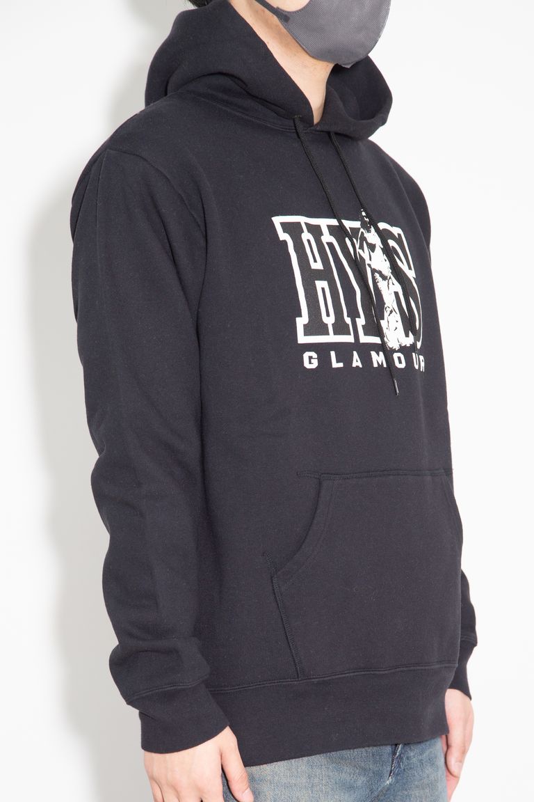 90年代のカレッジモチーフをHYSTERIC GLAMOURのロゴに置き換えたデザインのパーカー。