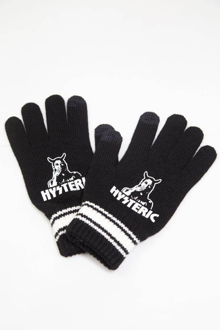 手の甲にアイコニックな SPEAK NO EVIL を配したニットグローブ。