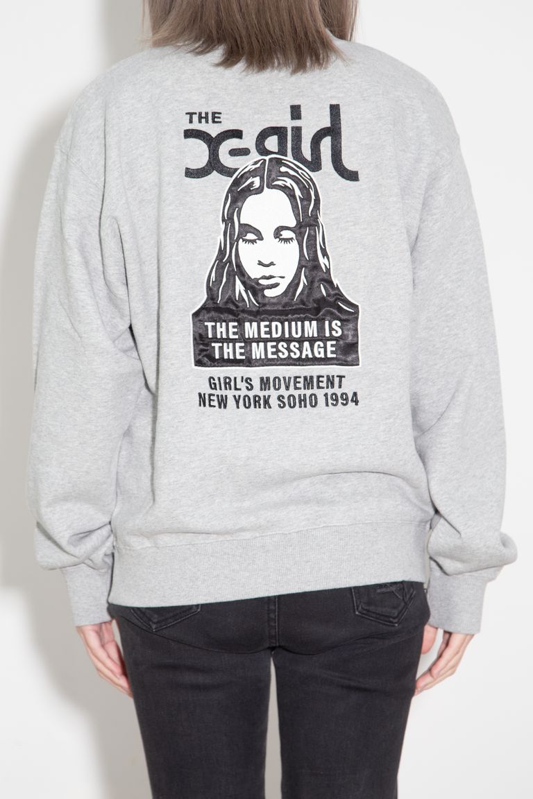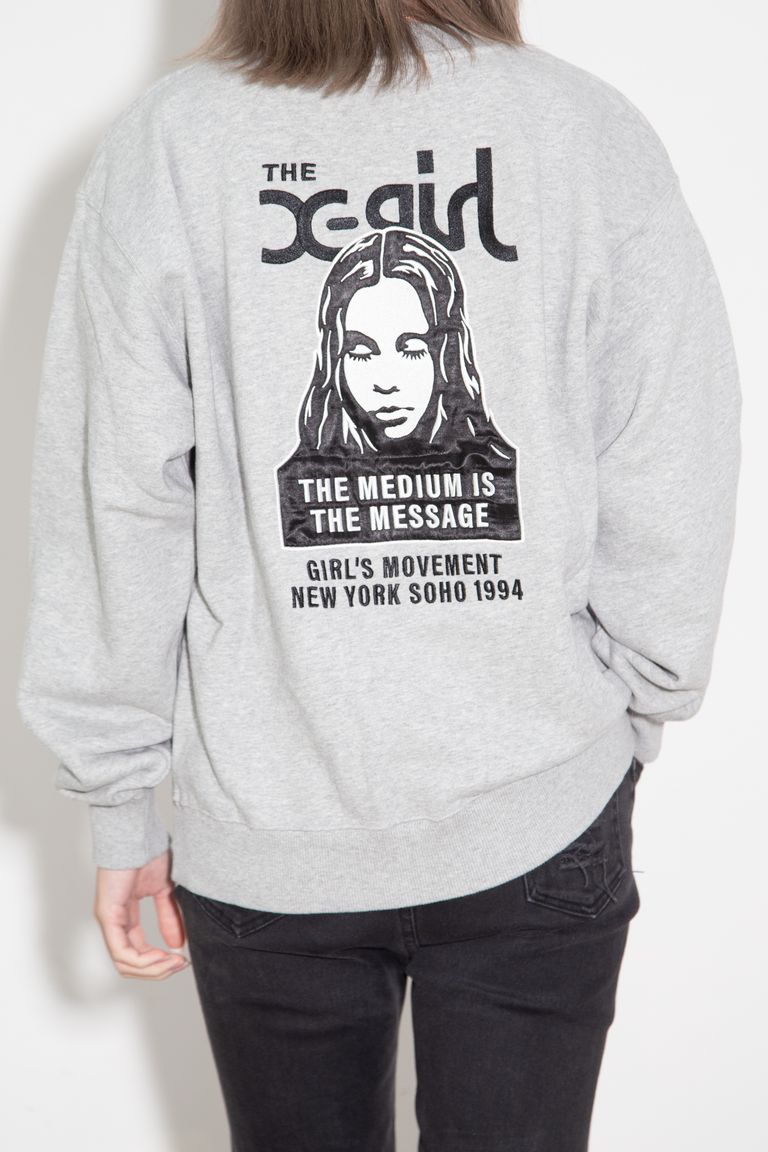X-girlのFACEロゴグラフィックが魅力のスウェットトップス。