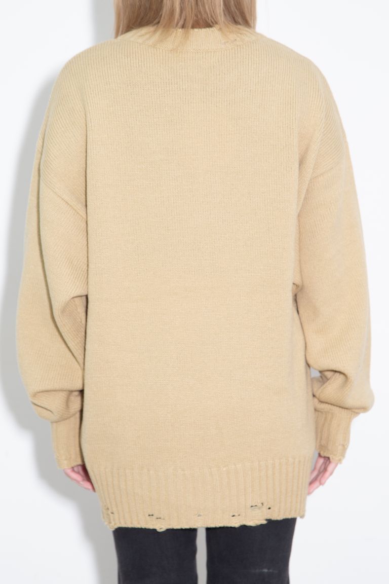 衿や裾にダメージに見立てたクラッシュ加工を施したセーター。