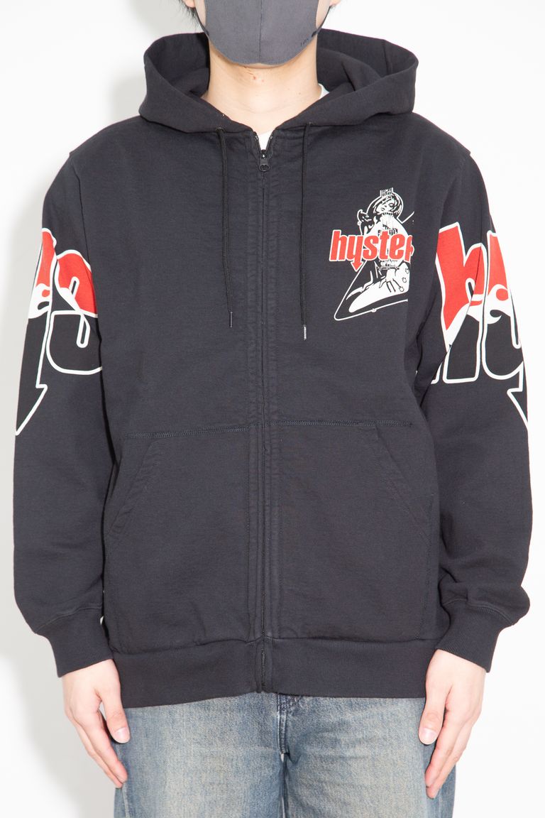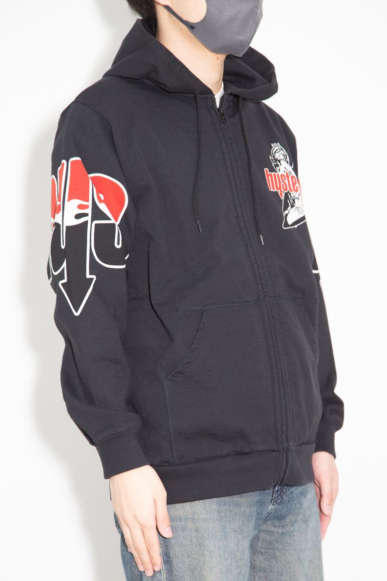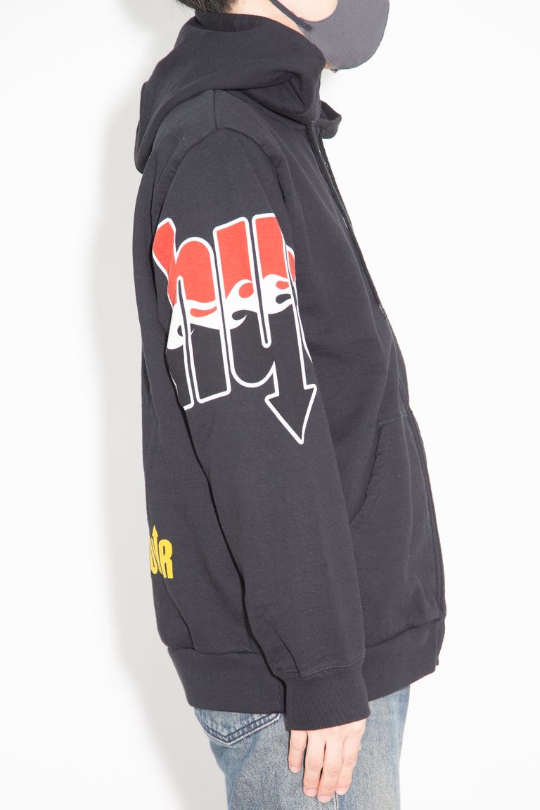 バックファイヤーの如く吹き出るギターサウンドをイメージした、HYSらしいロックテイストデザインの前開きパーカー。