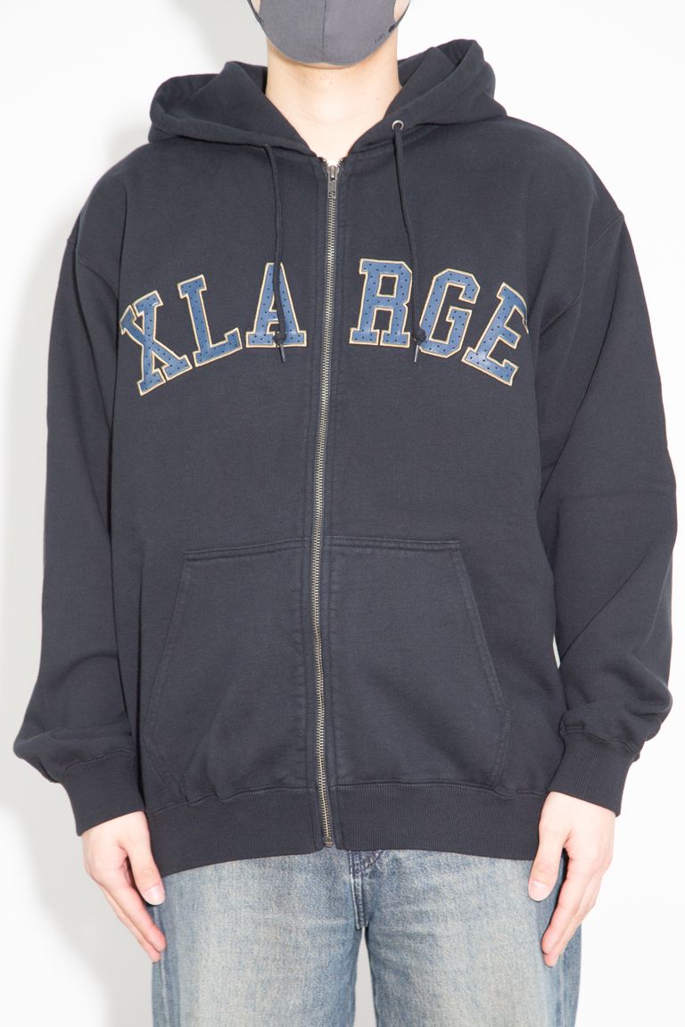 PERFORATED LEATHER LOGO ZIP UP HOODED SWEATSHIRT / ブラック
