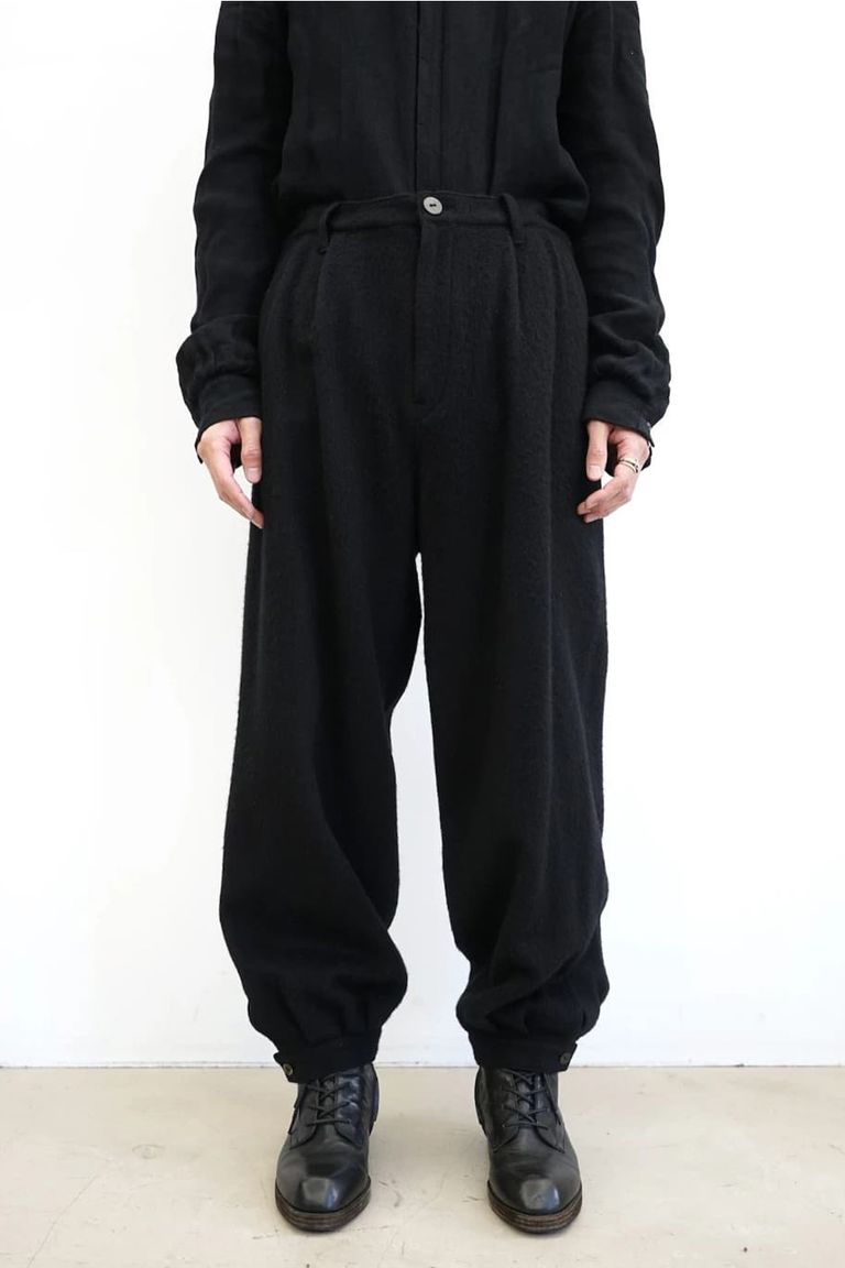 予約商品 ポイント5% 返品交換不可 送料無料 kujaku Tucked Hem Pants with Button Closure ¥63,800 税込 2,900 ポイント還元 入荷予定時期:2026年09月頃 この商品は 送料無料 でお届けします(※一部例外となる地域がございます 詳細) 質問する お気に入り コーディネートリクエスト不可 お電話でもご注文いただけます!お電話の際は 商品番号:20690 をお知らせください。 電話をかける 076-465-1855 ご不明点ございましたら、下記取扱い店舗まで お気軽にお問い合わせくださいませ。 Tempt / テンプト 076-465-1855 Trust / トラスト(ファボーレ店) 076-461-3172 商品説明 ウール100%のビーバー生地を使用した、ボリュームのあるワイドシルエットが特徴のパンツ。 滑らかで上質な素材感が、シンプルな構成の中に上品な存在感を与えます。 裾にはボタンを配し、留める位置によってシルエットに変化を加えることが可能。 ディテールをあえて控えめにすることで、パンツそのもののフォルムの面白さを際立たせています。 穿き方次第で異なる印象を楽しめる、スタイリングの主役となる一本です。 予約商品の案内 ※予約商品は、ご注文のキャンセル不可、返品交換不可となります。*予約商品は、生産の都合上、商品の納期遅延が生じる場合があります。*記載されている納期は、あくまで現時点での納期となりますので、納期が大幅に遅れる場合がございます。*納期が大幅に遅れる場合がある事をご了承頂けない場合は、ご予約はお控え下さい。※予約商品は、当店が発注した在庫数となり、生産の都合上減産される場合は、キャンセルとなります。※予約商品の決済は、クレジット決済、銀行振込のみとなります。 ※クレジットにて購入の方は、入荷まで期間が空いてしまいクレジットの実行が行う事ができなくなる為、購入日にクレジット実行となります。※銀行振込にて購入の方は、入金確認が取れ次第、ご予約完了となります。 ※商品画像は、サンプルのため、実際の製品とは仕様や加工、カラー、サイズ等が変更となる場合がございます。 上記をご了承の上、ご購入をお願い致します。 詳細情報 カラー ブラック 素材 wool 100% ブランド kujaku 品番 P-174 カテゴリ パンツ・ボトムス > イージーパンツ 性別 男性 返品 不可 ラッピング 不可 入荷予定時期 2026年09月頃 配送方法 ヤマト運輸(送料について) お支払い方法 本商品でご利用可能な決済方法は下記となります。各お支払い方法についての詳細はショッピングガイドをご覧ください クレジットカード払い セキュリティコードとはクレジットカード裏面のサイン欄上部に記載されている数字の一番右の3桁の数字です。アメリカン・エキスプレス・カード提携のクレジットカードの場合、セキュリティコードはクレジットカード表面に記載されている4桁の数字となります。 楽天ペイ 銀行振込 このアイテムをシェア この商品について質問する お問い合わせの入力内容が失われますがよろしいですか?
