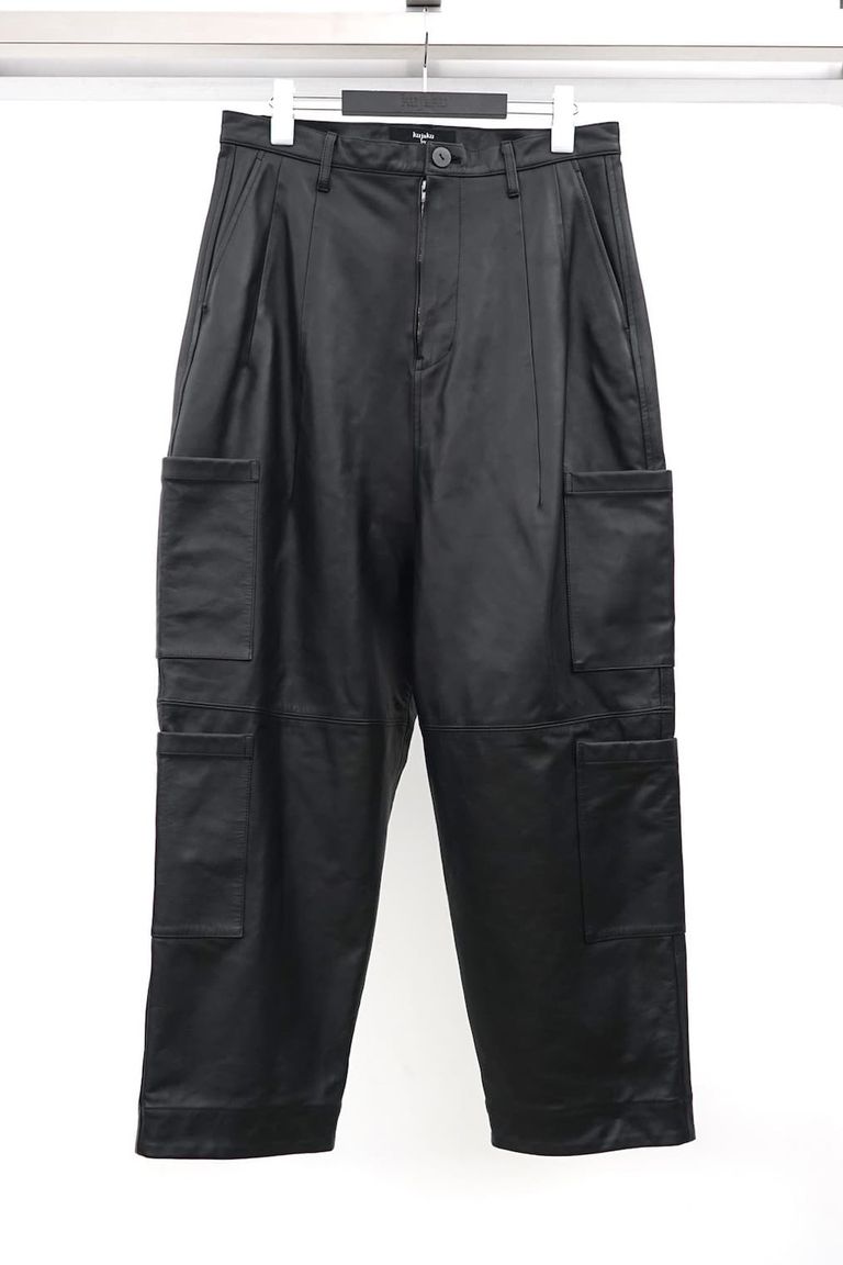 予約商品 ポイント5% 返品交換不可 送料無料 kujaku Leather Cargo Pants ¥261,800 税込 11,900 ポイント還元 入荷予定時期:2026年09月頃 この商品は 送料無料 でお届けします(※一部例外となる地域がございます 詳細) 質問する お気に入り コーディネートリクエスト不可 お電話でもご注文いただけます!お電話の際は 商品番号:20708 をお知らせください。 電話をかける 076-465-1855 ご不明点ございましたら、下記取扱い店舗まで お気軽にお問い合わせくださいませ。 Tempt / テンプト 076-465-1855 Trust / トラスト(ファボーレ店) 076-461-3172 商品説明 [Design] 深めに設定したドロップクロッチとカーゴポケットのディテールにより、無骨でルードな空気感を強く打ち出したレザーパンツ。 重厚な素材感とゆとりのあるシルエットが生み出す迫力のあるバランスが、スタイリング全体に強い存在感を与えます。 素材には、しなやかさと耐久性を兼ね備えたkujakuオリジナルレザーを使用。 無骨な印象を持ちながらも、着用を重ねることで体に馴染み、独自の経年変化を楽しめる一本に仕上げています。 今シーズンのコレクションを象徴する、ルードでありながらモードな空気も併せ持つ代表的なアイテムです。 [Fabric] kujakuオリジナルのレザーは、日本製ならではの確かな品質を誇ります。 姫路の熟練したタンナーに依頼し、特別な工程を経て仕上げられたクロムレザーを採用。 豊富に含まれた油分により、しなやかさと強度、そして高い柔軟性を兼ね備えています。 さらに、吸い付くようになめらかな肌触りと、驚くほど柔らかな質感も大きな魅力です。 表面は上品なマット仕上げとなっており、落ち着きのある洗練された風合いをお楽しみいただけます。 予約商品の案内 ※予約商品は、ご注文のキャンセル不可、返品交換不可となります。*予約商品は、生産の都合上、商品の納期遅延が生じる場合があります。*記載されている納期は、あくまで現時点での納期となりますので、納期が大幅に遅れる場合がございます。*納期が大幅に遅れる場合がある事をご了承頂けない場合は、ご予約はお控え下さい。※予約商品は、当店が発注した在庫数となり、生産の都合上減産される場合は、キャンセルとなります。※予約商品の決済は、クレジット決済、銀行振込のみとなります。 ※クレジットにて購入の方は、入荷まで期間が空いてしまいクレジットの実行が行う事ができなくなる為、購入日にクレジット実行となります。※銀行振込にて購入の方は、入金確認が取れ次第、ご予約完了となります。 ※商品画像は、サンプルのため、実際の製品とは仕様や加工、カラー、サイズ等が変更となる場合がございます。 上記をご了承の上、ご購入をお願い致します。 詳細情報 カラー ブラック 素材 leather 100% , (lining)cotton 100% ブランド kujaku 品番 P-344 カテゴリ パンツ・ボトムス > イージーパンツ 性別 男性 返品 不可 ラッピング 不可 入荷予定時期 2026年09月頃 配送方法 ヤマト運輸(送料について) お支払い方法 本商品でご利用可能な決済方法は下記となります。各お支払い方法についての詳細はショッピングガイドをご覧ください クレジットカード払い セキュリティコードとはクレジットカード裏面のサイン欄上部に記載されている数字の一番右の3桁の数字です。アメリカン・エキスプレス・カード提携のクレジットカードの場合、セキュリティコードはクレジットカード表面に記載されている4桁の数字となります。 楽天ペイ 銀行振込 このアイテムをシェア この商品について質問する お問い合わせの入力内容が失われますがよろしいですか?