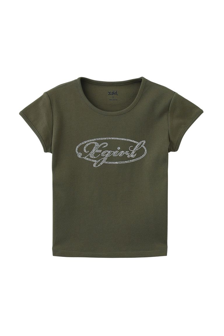 RHINESTONE OVAL CURSIVE LOGO S/S BABY TEE / オリーブ