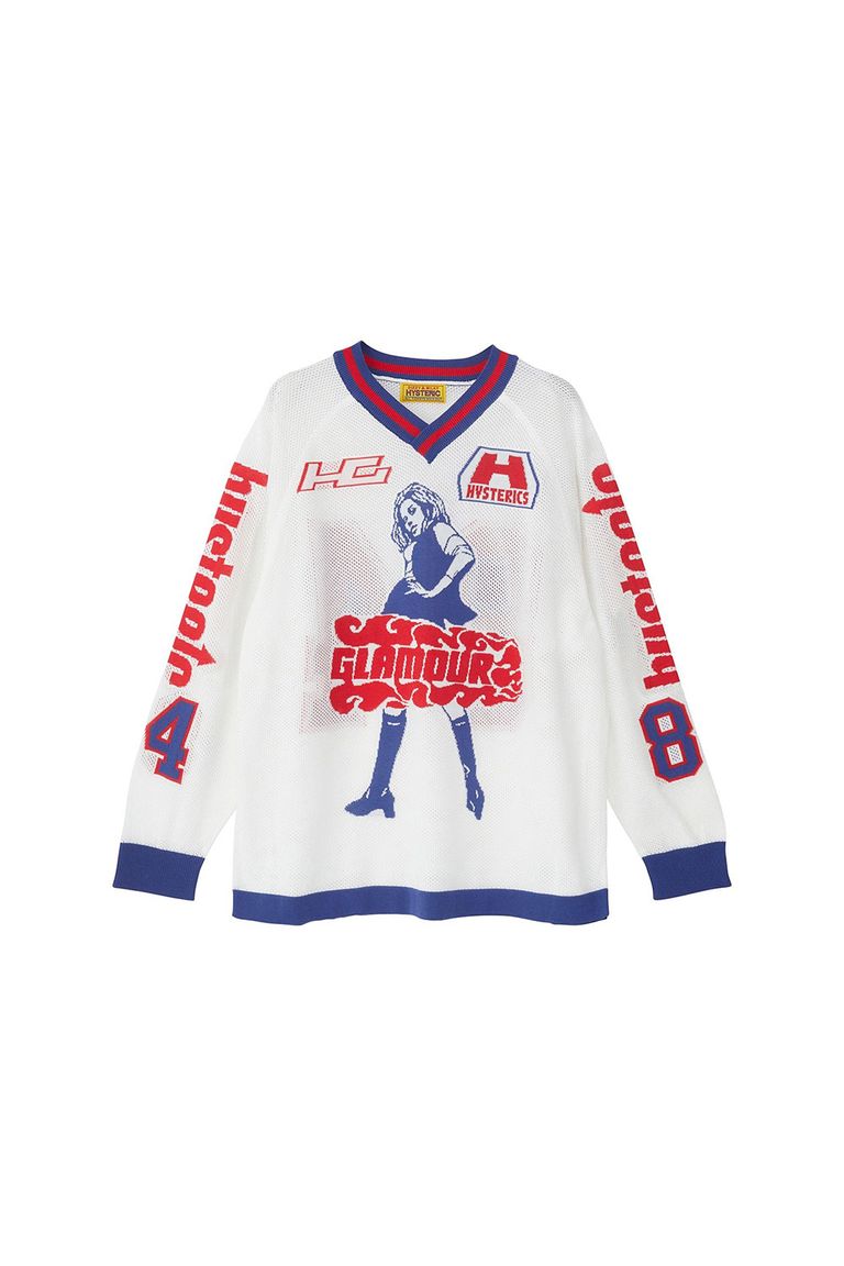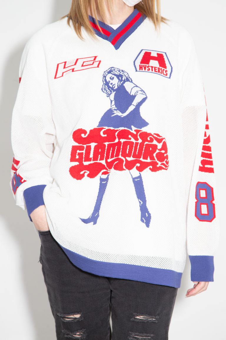 ホッケーシャツから着想を得た柄を、アイコニックな VIXEN GIRL のモチーフとして中心に配した。
