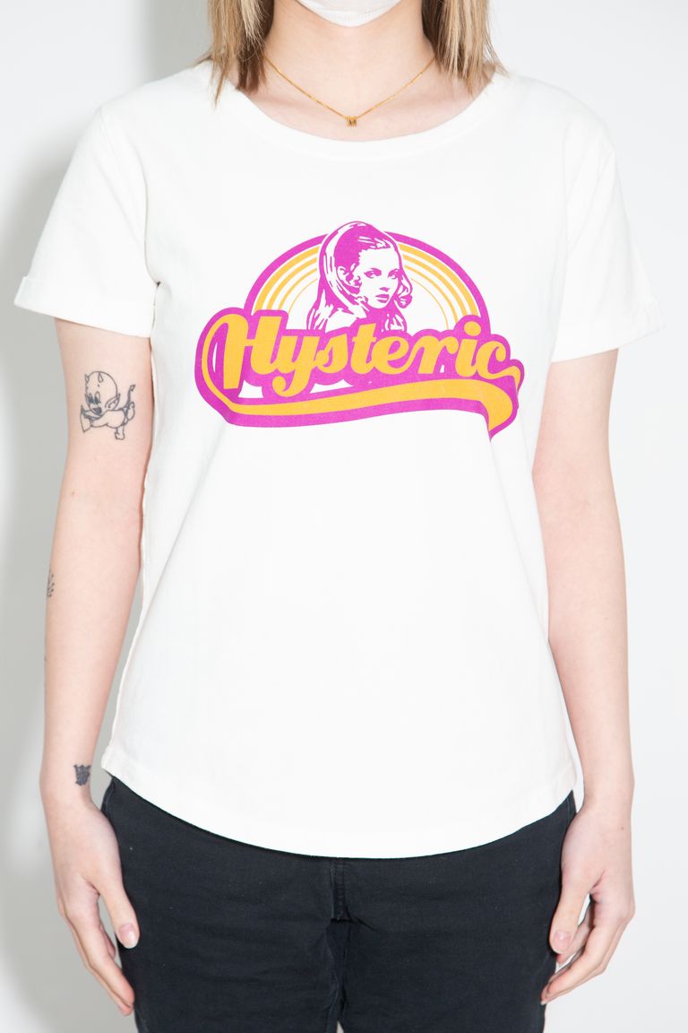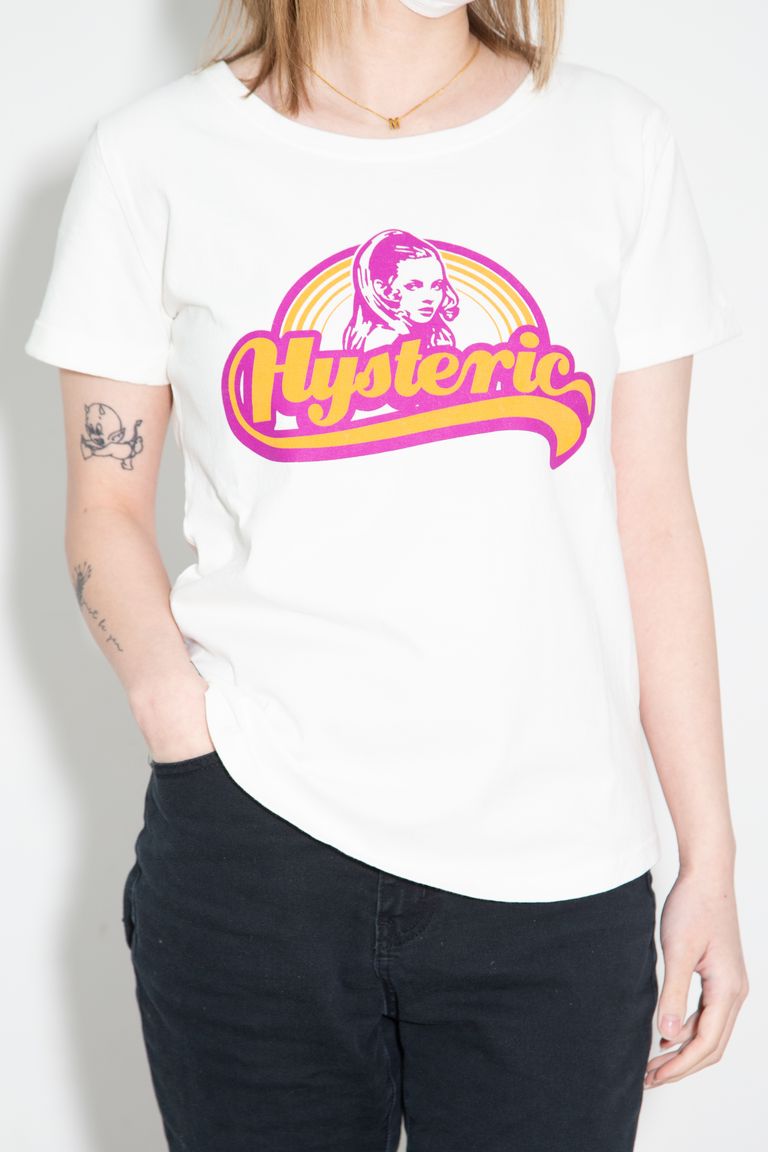 サイケデリックバンドのPVに登場する HYSTERIC WOMAN をポップにアレンジしたグラフィックを配したTシャツ。