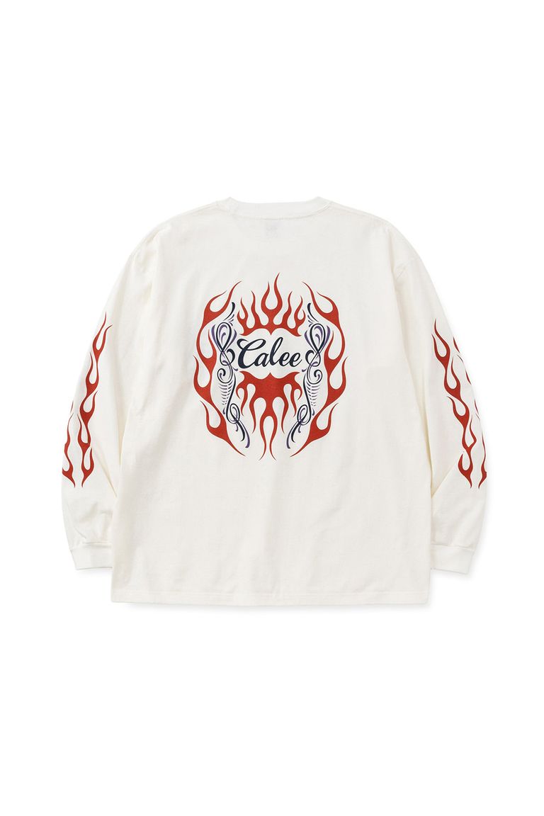 VINTAGE TYPE FLAME LOGO PINSTRIPING L/ S TEE <NATURALLY PAINT DESIGN> / ホワイト