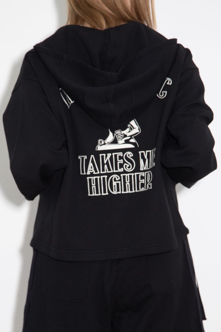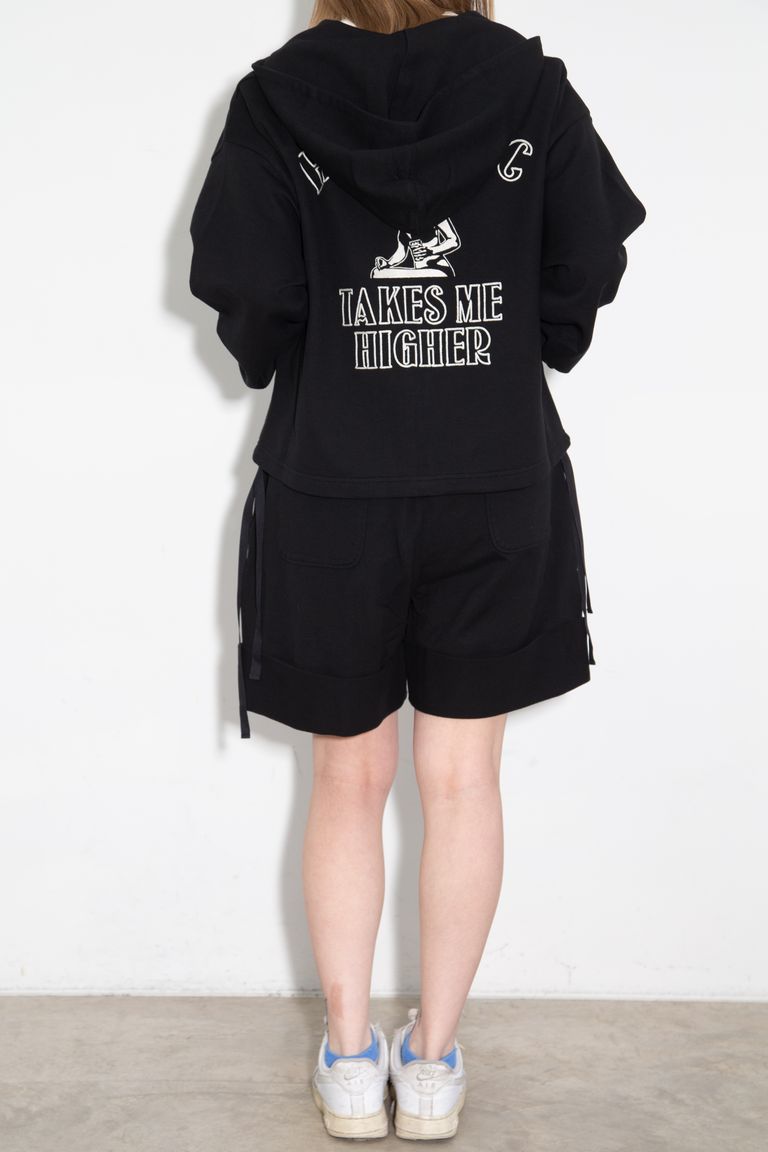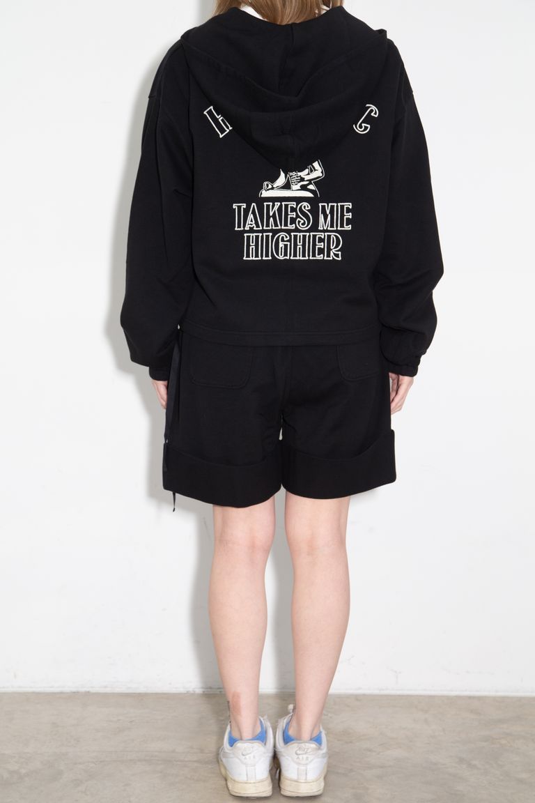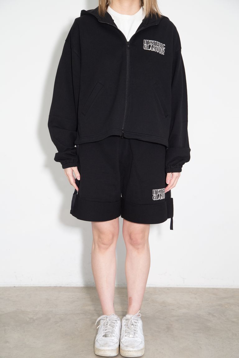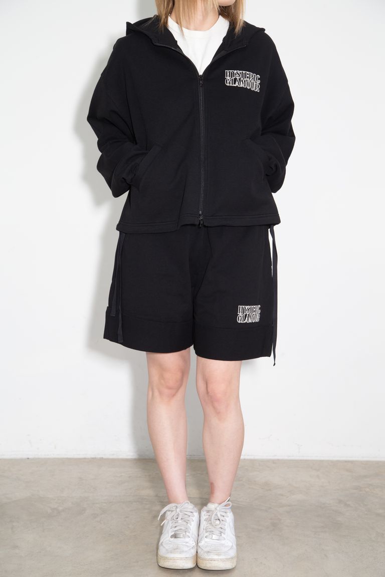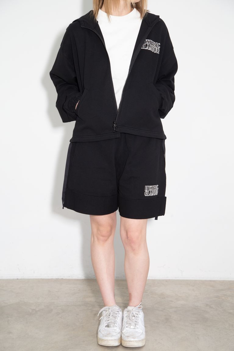 【セットアップ】TAKES ME HIGHER刺繍 パーカー、HYSTERIC刺繍 ショートパンツ / ブラック