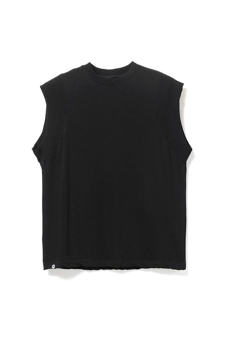 素材は、強撚糸をツイル目に編むことで程良い立体感が生地表面に生まれ、ヴィンテージ風なナチュラル感、シャリ感が兼ね揃った生地。接触冷感性や適度なキックバックもあり暑い夏場にも快適な着用が可能。同素材のタンクトップとのレイヤーもお勧めです。