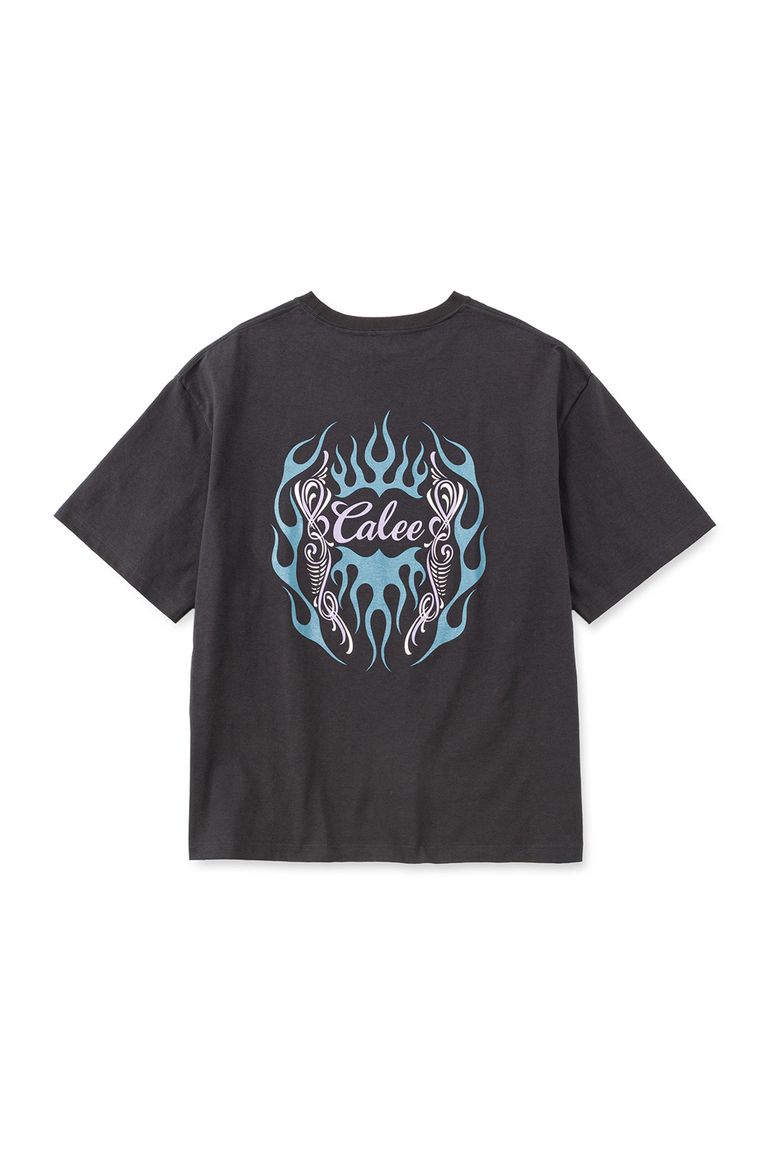 VINTAGE TYPE FLAME LOGO PINSTRIPING S/ S TEE <NATURALLY PAINT DESIGN> / ブラック